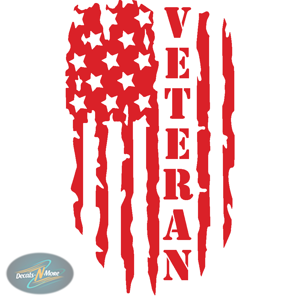 Veteran American Flag Distressed Vinyl Decal - American Patriotic Sticker